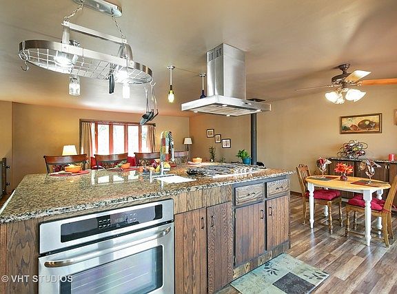 Spectacular water front property located on the channel of the fox river. Situated on three lots! Beautifully remodeled home nestled in a quaint community. So much new! New casement UV glass windows (2013), roof (2012), insulated garage door (2013), furnace & AC (2012), humidifier, water filtration system, new flooring through out, freshly painted, new light fixtures, deck, water tank for well, & the list goes on! Remodeled kitchen opens up to the living room featuring a huge island w/ granite countertops, breakfast bar, prep sink, cook top, vent hood & lots of cabinet storage. All newer stainless steel appliances. Double french doors lead out to the deck where you can enjoy beautiful sunsets. Wood laminate flooring on the entire first floor. Remodeled bathrooms w/ gorgeous ceramic tile. Spacious lower level w/ new epoxy flooring. 2 new wood burning stove fireplaces. Huge 26 x 19 attached 2 car garage. Under the deck storage/ work room. A peaceful retreat you can call home!