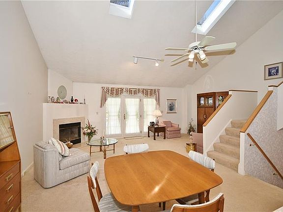 Beautiful contemporary condo in the quiet Chapelridge Community. Welcoming spacious hardwood floor entry with oversized closet accessing a tandem two car garage and large laundry room. The main floor offers a huge great room with vaulted ceiling, skylights, marble surround gas fireplace and French doors opening to a private concrete patio. The kitchen offers updated maple cabinets, pantry and island open to the dining and living space. Down the hall is a master suite with full bath, walk-in closet equipped with a second stackable washer and dryer. Upstairs offers an 8X9 loft perfect for office and a second master suite with vaulted ceiling, skylights, full bath and walk-in closet. Make this sun filled condo your own