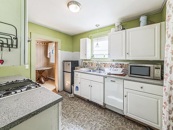 This charming 2-bedroom, 1-bath cape-style home, built in 1947, offers 840 sq ft of cozy living space on a 7,405 sq ft lot. Located on the outskirts of town, this home has had maintenance updates to the windows, roof, electrical, kitchen, bath, and heating system. The home features hardwood floors, a built-in china cabinet, a fireplace, and a covered farmer’s porch. There is ample potential for expansion with a partially finished second floor and a basement-level garage. The fenced yard is perfect for pets to work out their zoomies! Come tour this charming property, and claim your own piece of the Green Mountain State.