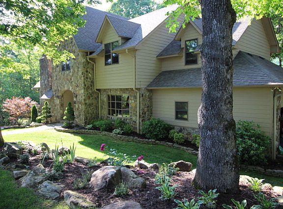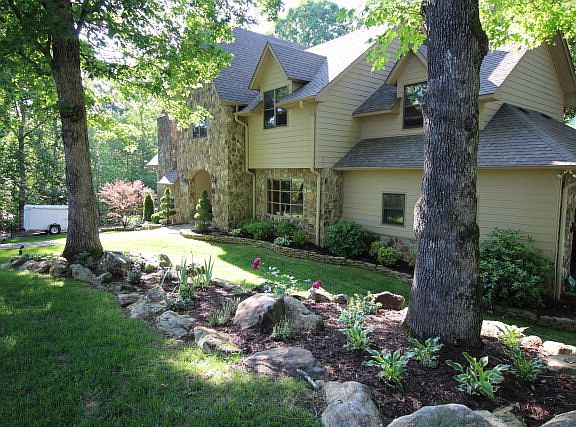 This charming, elegant home close to town has so much character with the stone exterior and different roof elevations. The professional landscaping was strategically place and enhances the lot and home. Inside the home is lovely with a new kitchen that has quartz counter tops, custom cabinets,stainless steel appliances & hardwood flrs. The greatroom has a stone fireplace w/cathedral ceiling which can be closed off by French doors. Entertain your guest in the formal dining rm. With a bay window that looks out over the front yard. Both levels has a master bedroom w/ bath with privacy for all.