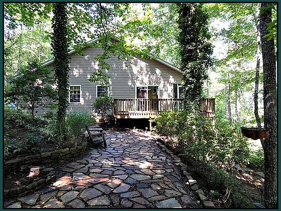 2 Bedroom 2 Bath home was completely renovated and upgraded in 2017 with monitored security system. Large living room with high vaulted ceiling finished with T&G spruce, natural rock wall, fireplace, laminate floors and a Bay Window. Kitchen has granite counter tops, stainless appliances, ceramic wood plank floors with Dining room has high vaulted ceiling finished with T&G spruce with Bay Window and sliding glass doors leading to the large open deck and patio area, great for grilling or entertaining. Master bedroom has walk in closet, his and her vanity's, tub/shower unit and linen closet. Guest bedroom with new laminate flooring and office space. Second bath with ceramic floors and tub/shower unit. Hall closet for laundry and another storage closet. Wrap around screened in entry & deck to enjoy year round. New standing seam metal roof in 2019. Beautiful Landscaping surrounding the property with rock retaining wall, very little up keep or grass to mow and vinyl siding. Detached office building with heat and a/c. Attached two car garage has attic stairs for light storage and extra parking on property. Easy access in to small subdivision on gravel road that is kept up. Close to town with no city taxes but has city water. Private, quiet & peaceful setting.