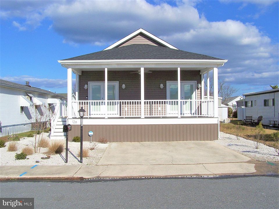 This beautiful nearly new home was stick-built in 2022 and is located in the highly sought after community of Montego Bay in North OC. The home features many interior upgrades including Samsung stainless steel appliances, Granite kitchen counters, 42" white shaker style kitchen cabinets, ceramic tile/glass backsplash, brushed nickel hardware throughout, 2 panel interior doors, 5-1/4" base trim, ceiling fans in all bedrooms and a 72" ceiling fan in living area, vaulted ceilings in living area, Luxury Vinyl Plank flooring throughout, matching Granite bathroom vanity tops, ceramic tile showers, and a full size Samsung washer and dryer (white). Exterior of the home has 5" lap Monogram vinyl siding in Weathered Wood color, GAF Architectural shingles, white Viwinco windows with grills, Trex maintenance free decking, white vinyl railings and white exterior lighting. Montego Bay community amenities include 2 inground swimming pools, 1 kiddie pool, 2 tennis courts, pickle ball courts, a shuffleboard court, a 9 hole mini-golf course, a community fishing/crabbing area, an 8 acre wildlife sanctuary/park area with a large pond and a blacktop walking/jogging trail, and a bayfront boardwalk with 3 fishing/crabbing piers...all for a low hoa fee of $360.00 a year!