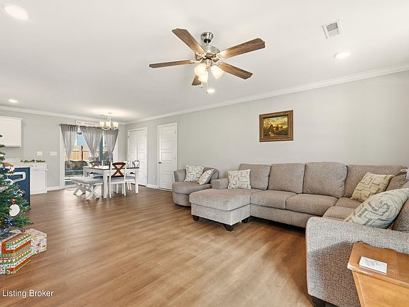 This well maintained 3 bedroom, 2 bath home offers an open floor plan with beautiful LVP flooring throughout. The spacious living area flows seamlessly into the kitchen, featuring a large island, stainless steel appliances, ample cabinet and counter space, and recessed lighting, making it ideal for everyday living and entertaining. The primary bedroom includes an attached full bath and a generous walk in closet. Two additional bedrooms, a second full bath, and a dedicated laundry room complete the interior. Enjoy outdoor living from the covered front porch or the covered patio overlooking the fully fenced yard with an above grade pool, perfect for summer gatherings. The one car garage includes a bonus area with a utility sink, adding extra functionality and storage. Home being sold as is.