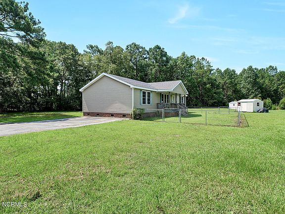 Enjoy serene country living on a beautiful .80 acre lot that provides privacy from the main road. This well-maintained home features open living, a large center island & 2 pantries in the kitchen, a gas fireplace in the living room and separate laundry room. The master bedroom has an ensuite bathroom with dual vanities, a walk-in shower and soaker tub. All bedrooms have walk-in closets. There is laminate flooring throughout except for two bedrooms with carpet. Relax and enjoy nature on the covered front porch. There are two sheds for storage, new back & front porch steps and a two-year-old Trane heat pump. You can be at N. Topsail Beach and Holly Ridge in 10 min., and Surf City and Camp Lejeune in 18-20 min.
