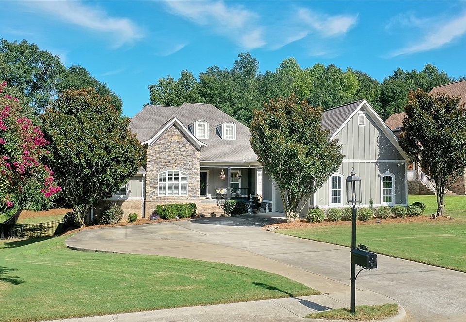 This is a terrific Auburn home sitting on a large lot. You'll love this peaceful neighborhood. Watch shooting stars from the deck without the interference of city lights. The property has plenty to offer. The roof was replaced in 2022. The exterior was painted then as well. The backyard is fenced to protect your pets. The neighborhood has a neighborhood pool, gazebo and inspiring pond. The floor plan is refreshing. There are 3 bedrooms on the first floor, a huge bedroom or bonus room on the second floor and a fifth bedroom with bath and a private entrance that sits separate next to the attached 2 car garage. That makes it perfect for guests that prefer a little more privacy. The basement man cave / media room has beautiful stained concrete floors and space for viewing and play. The wood floors have been refinished. Don't miss this great opportunity. It's only 8 minutes to Jordan Hare!
