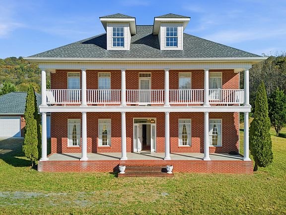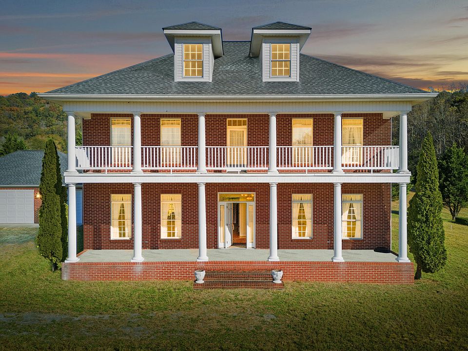Rolling pastureSecond-floor balconyFormal dining roomImpressive fireplaceInviting front porchAll-brick southern estateSpacious great room
