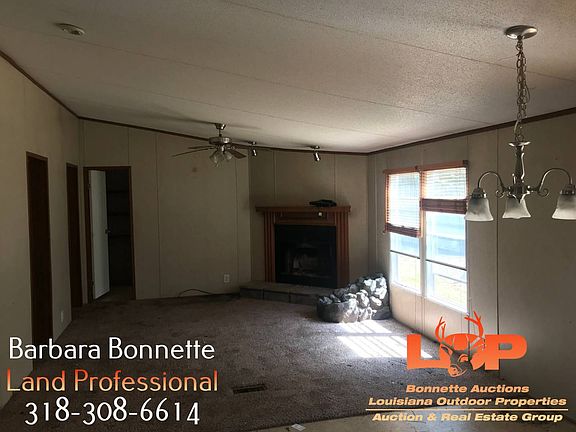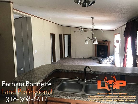 3 bedroom 2 bath double wide mobile home on 1+/- acre with fenced backyard and storage building. Located near federal prison. Fireplace Formal Living Skirted Quiet Country Living! Bank Foreclosure Asking price $60,000. Property Address: 126 D Bledsoe Road, Pollock, LA 71467 Licensed by Louisiana and Mississippi Real Estate Commission