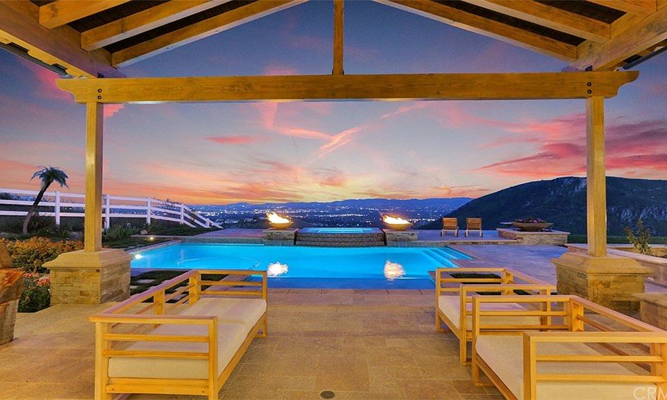 Dramatic panoramic views are yours to enjoy from this 4 bed / 4.5 bath / 5200 sq ft + guest house Bell Canyon estate situated on a premiere lot in this highly sought after private community. Completely renovated, this home was thoughtfully designed for indoor/ outdoor living that features breathtaking views, abundant natural light, hickory hardwood floors and stunning custom woodwork throughout. This open concept living room features cathedral ceilings leading to a spacious 2nd story loft and is topped off with folding glass doors that offer seamless outdoor access to a sprawling backyard. A gourmet chef's kitchen boasts Viking/Sub Zero appliances, over-sized center island, and eat in dining area separate from the formal dining room. A Grand Master Suite focuses on incredible views, fireplace, generous walk in closets and luxurious en suite bathroom. A Junior master suite, gym and two additional bedrooms, laundry room and formal dining & living rooms round out the main house also offering a 3 car attached garage. Entertain in your private resort-style backyard boasting a modern pool with Baja shelf, Jacuzzi, cascading waterfall and fire features as well as BBQ area, putting green, travertine hardscape and elegant landscaping. A 900 sq ft guest house with vaulted ceilings, full bathroom and reclaimed historic barn timber sits adjacent a well lit sports court. The nearly 2 acre estate is set below the main road for maximum privacy. Welcome Home