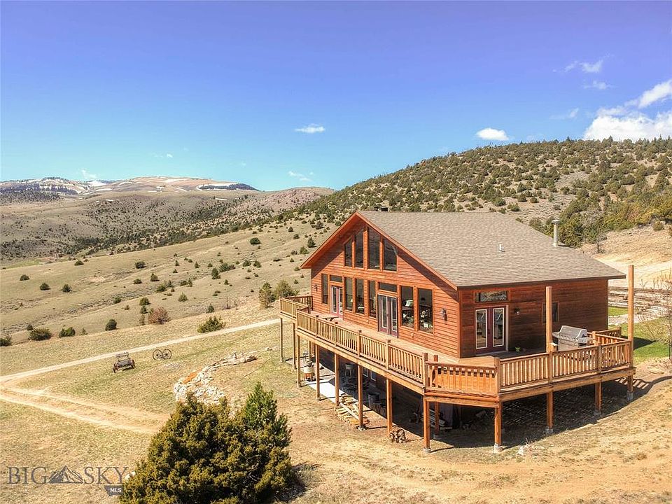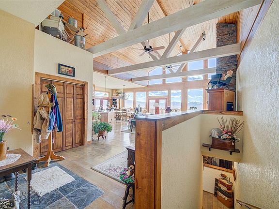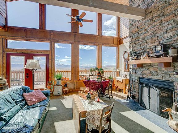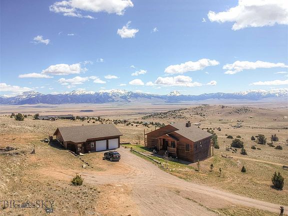 Take in the amazing views that span the Madison Range Mtns, River and Valley!! This immaculately maintained 3 bedroom 2.5 bath custom home features open living area, vaulted ceilings w/ exposed beams, hardwood floors, impressive large stone fireplace, office, view windows thru out home. Oak cabinets in kitchen w/built-ins, custom tile counter tops with farm sink, large island w/cook-top and eating bar. Great room opens onto large deck perfect for entertaining, bbqs and enjoying the view! Downstairs living area opens out to concrete patio. Oversized 2 car garage. Great guest apartment featuring l bedrm, 1 bath, livingrm and kitchenette. Oversized 2 car garage w/ equipment room, and attic storage area. 40x42 Metal Pole Barn w/ 14' R.V door openings.