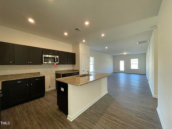 Smith Douglas presents The Piedmont A at Cedar Pointe. This is a thoughtfully laid out ranch home offering great features to fit today's lifestyle at an excellent value. A cozy front porch welcomes you into these 3 beds, 2 bath, 2 car garage with a formal living/flex space at the foyer leading into chef inspired kitchen with large centrally located granite island with undermount sink and stainless appliances. The spacious family room adjacent to the breakfast area allow plenty of natural light to flow through with the windows as well as direct access to enjoy the back yard to entertain guest on the large open patio. Peacefully located owners suite equipped with walk in closet, quartz double vanity, tub/shower, and water closet. Secondary bedrooms are separated by deep walk-in closets and conveniently located upgraded hall bath with quartz vanity and laundry room. Luxury vinyl plank flooring leaving carpet only in bedrooms.