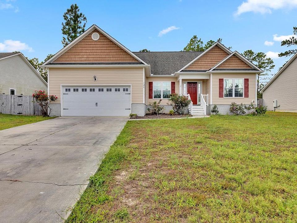 Welcome to the charming Cutie Home in Holly Ridge located right down the road from the Dixon Schools. Relax on the covered front porch over looking the one street community. This lovely 3 bedroom, 2 bathroom ranch-style house features an open floorplan featuring a vaulted ceiling in your living area that is open to the spacious eat-in kitchen. Enjoy the convenience of a split bedroom floorplan, allowing for privacy and comfort. The master suite includes a walk-in closet, and private ensuite with his/her sinks, linen closet and tub/shower combo. Separate laundry room with washer/dryer hook-ups. Plenty of storage in the large privacy fenced backyard with a storage shed and a 2 car garage. 1 Pet with owner approval & pet screening, $150 nonrefundable pet fee. Don't miss out on the opportunity to make this Cutie Home your own!