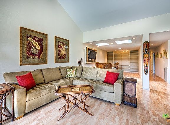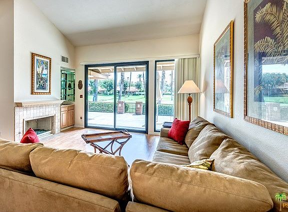 Country Club Living in a Three Bedroom, Two Bath, Single Level Condo on the Golf Course w/ Fairway & Mountain Views! This Move In Ready '30 Plan' is an ideal Investment Opportunity with its Open-Concept & High Vaulted Ceilings accentuating Natural Light. Den & Hall Bath feature Solar Tubes & above bar are Skylights that actually open! Upgrades include Dual Pane Windows, Wood Blinds, Separate Laundry Room, Epoxy Floor in Direct Access Two Car Garage, Kitchen Open to Patio & Living Room has a Fireplace. The community offers 27 Holes/Golf, 19 Tennis, 37 Pools, Spa, Full Service Clubhouse & Newly Renovated Fitness Center. Memberships to Club avail. w/No Initiation Fee! Close to El Paseo Shopping/Dining & McCallum Theatre!