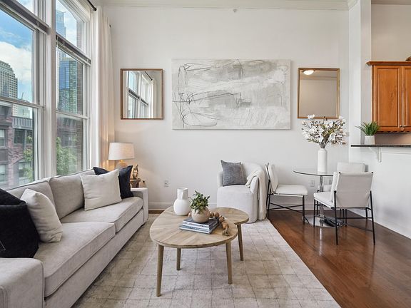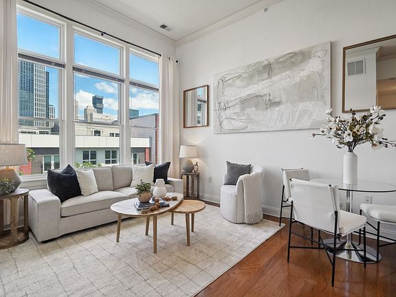 Paulus Hook Prime PENTHOUSE with an on-site garage parking space included! This beautiful 2 bedroom, 1 bathroom, Penthouse is a total stunner, with soaring 12.5 ft. ceiling heights, massive oversized windows with transoms fill the home with amazing light and brilliant sky scapes, and a generous open floor plan. Impeccably kept, Residence 403 at 126 Dudley features a chef's kitchen with stone counters, abundant cabinetry, s/s appliances, and 4-seater breakfast bar. Gleaming hardwood floors throughout, closets galore, and a spa bathroom with dual vanity, imported tile floors, and deep soaking tub/shower combo. The king-sized primary bedroom is a glorious retreat at the end of the day, while the second bedroom is also perfect as a nursery, home office, bonus den, etc. Central HVAC, recessed lighting, full size in-home W/D, and controlled access complete the picture. Head down to the fully equipped gym for a quick workout, or take the elevator to your dedicated garage parking space and go for a spin! Located in the heart of Paulus Hook, the best dining, shopping, Whole Foods Market, 2 PATH stations, NY Waterway, and the coveted PS16/Bradford school district are right outside your front door.