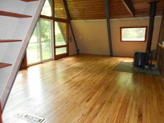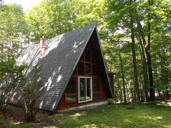 This property is eligible under the Freddie Mac First Look Initiative t0 7/19/15. Recent improvements make this Chalet an excellent value! Includes two bedrooms, sunroom, eat-in kitchen/dining area, living room with new Vermont casting woodstove, and loft overlooking floor to ceiling windows. Many upgrades include windows, roof, bathroom, new carpet and upgraded hardwood floors, new hot water heater and heating system! Private setting with seasonal views of lake.