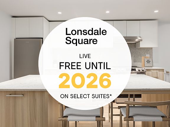 This pet-friendly building has your security in mind with a 1Valet smart security system, smart package lockers, keyless entries, and management on-site. Suites are designed with stunning mountain and city views, free unlimited high-speed internet, in-floor heating, and ENERGY STAR appliances. Whether working from home or needing easy access to major roadways, Lonsdale Square is a home built for work and play. Find out for yourself!