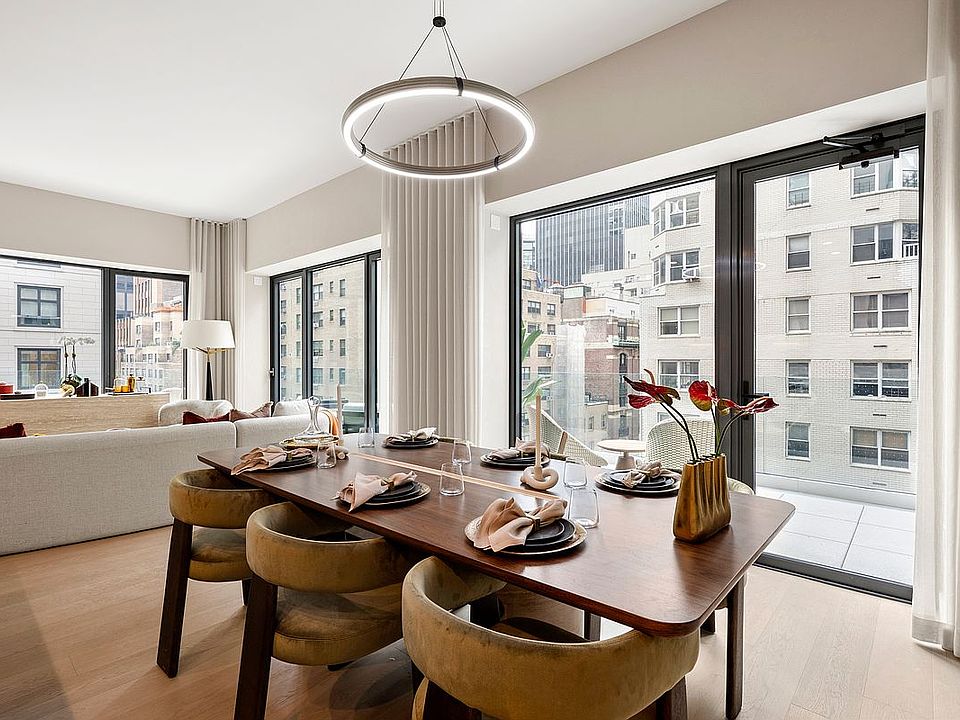 Residence 2403 is a meticulously designed 1,715-square-foot home, defined by its generous scale and expansive north, west, and south exposures that maximize light and openness. Eleven-foot ceilings and 8-foot windows frame views, while an expansive 123-square-foot private terrace invites a seamless connection to the skyline.