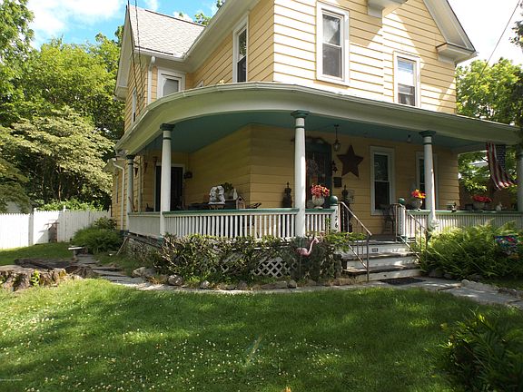 OLD WORLD CHARM 1 block from Lehigh Valley - Pocono Hospital with In-Law Suite. Gorgeous Victorian with Original Woodwork throughout including Heavy Oak Pocket Doors off Living room and Family rooms. Features ALL Hardwood & Tile floors on 1st & 2nd levels. Wrap around front porch, fenced yard, detached garage, and gas heat with cast iron radiators. Updated kitchen and newer roof. All Newer Thermopane Tilt Out Replacement Windos. Level 2 has 3 bedrooms, full bath with claw tub/shower plus a den/nursery. Level 3 has a kitchenette/dining/living area plus another bedroom and full bath with claw tub. Public Water & Sewer. 3 blocks from Rt 80 and shopping nearby.