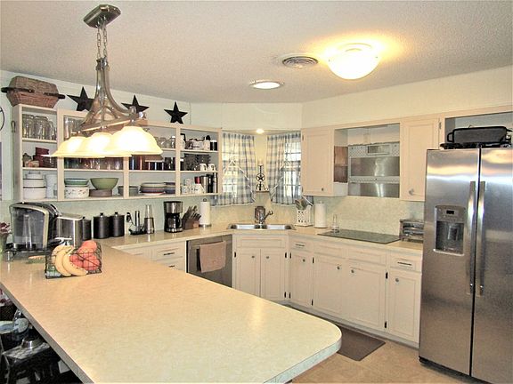 Quiet, peaceful location with a country living feel best describes this 3 bedroom, 2 bath brick home which is located at the end of a dead-end street on just less than a 1/2 acre lot with many large shade trees. The interior of the home features an open floor plan with a large breakfast bar that separates the kitchen from the living room. The large dining room sports several windows and built in cabinets. Many of the appliances have been replaced over the past few years, one of the hot water heaters is brand new and the AC/CH unit was replaced in the fall of 2020. A 2 car carport with extra storage is attached to the home and there is also a detached metal shed ideal for an additional vehicle or boat and a circular driveway. Other amenities include a wood burning fireplace in the living room, portable storage building/shop and separate water meter for the landscaped yard. The countryside view, backyard and an abundance of wildlife can be enjoyed daily from a large covered patio.