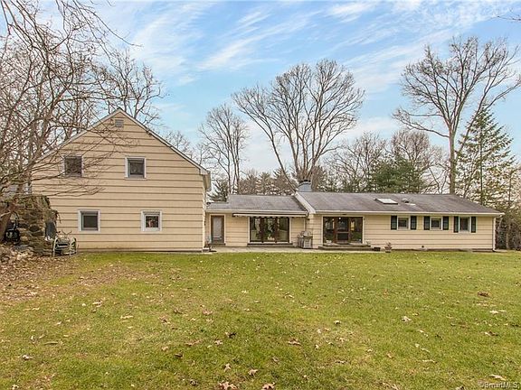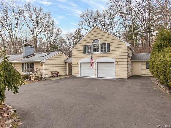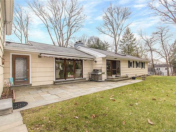 "Back on market" through no fault of the house... The best of all worlds: New Canaan schools, taxes & parks and Stamford beaches! Wow! Drive up to this gorgeous house, with circular driveway, entering the home next to the two car garage leaving your shoes in the mud room! You will note a welcoming light-filled space with beams and a vaulted ceiling, a fireplace, row of three full height windows, a wet bar (and wine lover's delight) along with sizable dining and recreational space. Head through to a second dining area, open plan kitchen (with breakfast bar and walk-in pantry), and living area with built in shelves and fireplace. Don't miss the European tilt 'n' turn windows! This home is made for those who love to entertain! Step out onto the patio and take note of the spacious fenced-in back yard which will delight a soccer enthusiast or larger dog looking to run! There are 3 beds on main level. The lower level offers many possibilities including home office(s), a recreational room, as well as an abundance of storage/cedar closets for winter clothes. Don't miss the three room in-law suite above garage with separate entrance. Note: public sewer (Stamford). Enjoy the peace & quiet of New Canaan and the energizing Springdale vibe for take-out restaurants, coffee bars & stores and convenience of Talmadge Hill, RR or Springdale RR depending on your mood! This delightful home has it all!