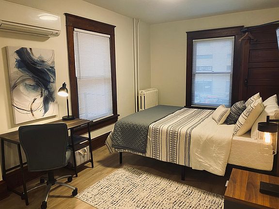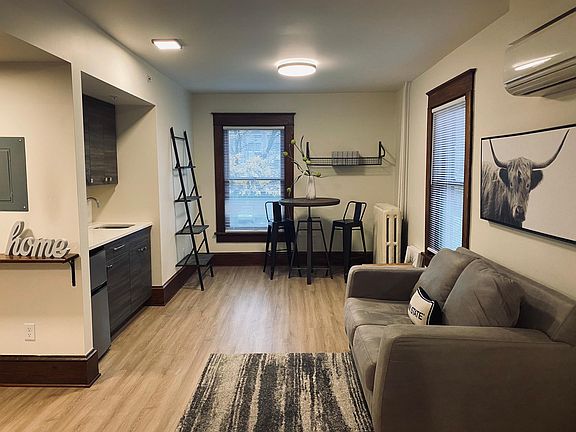 If you seek unique, this is for you! Sorry no undergraduates. Amazingly renovated large studio unit features high ceiling, lots of light and luxury furnishings. Quality finishes include kitchenette with mini-fridge, microwave, and bar sink (no stove), and a spa-like bathroom with walk-in shower, floating vanity. This unit encompasses a wonderful blend of modern features with kept character of the building. This is a one-of-a-kind property. Professionals, Executives. Short term leasing options available. No smoking, no pets. Application fee $25 (non-refundable). Parking included. Tenant pays: cable, internet. Close to Penn State University, located downtown State College. Tenant pays: cable, internet. Application fee $25 (non-refundable). No pets, no smoking. Professionals, Executives, no undergraduates.