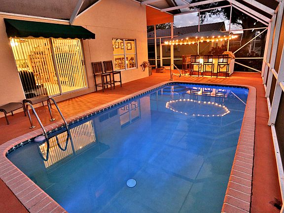 Come see this highly sought after 3 bedroom 2 1/2 bath home with glorious pool and lake views. This home has it all! The updated master bath sets the tone for a spacious, picture perfect master suite. New-er appliances highlight the open kitchen that is made for entertaining. The flow between the family room and living room is an ideal situation for family get together's. Added high hat lighting gives this home a bright feel on the cloudiest of days. The fun does not stop inside! Wander out to the luxurious screened in patio with a 12 X 24 pool and its accompanying bar/grill/refrigerator/sink for your outside entertaining needs, or just sit and relax as the sun sets over the sublime private lake. All just steps from your back door. Did I mention the HOA fee is $105 per month?!!
