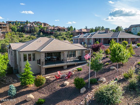 Welcome to this exquisite custom home that offers breathtaking views as far as the San Francisco Peaks. This home boasts 4 bedrooms (two of which are ensuites), 4 baths, and a 4 car garage. And yes, the solar system is Completely Owned!! The living space is 2940 sq ft with an open floor plan that enhances the elegance and spaciousness of the home. The kitchen is a chef's delight, granite countertops, a large island, stained knotty alder cabinets with roll outs, upgraded appliances and reverse osmosis. The great room is a warm and inviting space, with a stone fireplace, custom cabinets and bookshelves. The primary bedroom is a tranquil sanctuary, with views and an adjoining room that can serve as an office, den or workout room. The primary bath is a luxurious haven,