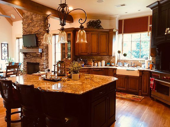The moment you see this home, you will want to step inside. A sweeping paver lined driveway curves along the boulder wall and leads to the stone arch entry and exquisite solid wood and glass double door entry. This home exudes warmth & quality throughout. Situated on 2.11 acres, it is comprised of 4 bedrooms plus 4 bed bunk space, 4 full baths, 2 powder rooms, 5 fireplaces, covered porches on both levels, Great Room, kitchen with adjoining Hearth Room, patio level Family Room, huge workshop, craft room and 3-bay garage so many homes of this size are lacking. Outdoor entertainment includes putting green with sand trap, firepit, water feature and a covered resistance pool for all weather use. Architectural details include hand hewn stone arches, hand split shake siding, swoop roof, exposed rafter tails, and copper chimney pots and roof accents. As you enter The Great Room beckons you. Just past the vertical beams defining the Great Room you'll appreciate the transition to a vaulted wood ceiling. French doors flank the fireplace and open to a screened porch complete with wood flooring and inviting stone fireplace. Opening the doors expands your entertainment space to include the outdoors. A large granite island separates the kitchen from the Great Room without sacrificing the enjoyment of visiting with others. The kitchen is both beautiful & functional w/ large island & prep sink, full tile back splash behind the range w/ pot filler and custom cabinetry more like furniture. The Hearth Room enjoys a vaulted wood ceiling and Kentucky fieldstone fireplace. It accommodates flexible dining options; in front of the long window seat, or recessed into the bay window or use the entire room. All options enjoy dining by the fire and lingering at the table. No guests? Enjoy a casual dinner and movie with your "date". The master suite is a welcoming retreat. The vaulted ceiling with coffered center adds character and a sense of spaciousness. 2 doors open to a covered porch and provide owners with nature's sitting room. The spa-like bath boasts heated floors, large window, vaulted ceiling, jetted soaking tub, walk in shower with multiple body sprays, long vanity with separate sinks. His and her closets plus a linen closet provide plenty of storage. The office was designed to double as a 2nd bedroom on the main level if needed. The coffered ceiling and built in bookcase suit this owner's preference for an office with full private bath. Glass French Doors just off the foyer add character and the window overlooking the courtyard provides light. These owners wanted to be sure guests had a place to "hang out" and stay a bit longer without feeling they were in the way. Equipping the custom cabinetry with sink, mini fridge, microwave and dishwasher accomplished the goal. This FAMILY Room mirrors the Great Room w its stone fireplace & French Doors leading to a covered patio. Porches & patios on both levels ensure the out-of-doors is always at hand. The resistance pool is a big hit with adults & children. Set the flow as desired. Owners' grandchildren all learned to swim in this pool! Super sized for enjoying with friends at cocktail hour. The yard is a veritable playground with ample place to kick a ball and enjoy the already noted amenities. Sleeping quarters on the patio level include 2 bedrooms and 2 full baths. A 4 bed bunk space delights young visitors and can be closed off behind double doors when not in use. The two bedrooms are on opposite sides of the Family Room, allowing guests to enjoy their privacy. The huge workshop would make an amazing bedroom given its size, doors to the yard and being adjacent to a full bath. This owner has enjoyed the access without going through the house to bring in supplies or take out finished projects. Not to be left out, the wife enjoys a bright sewing/craft room. The owners created a hidden kids nook under the staircase, providing everyone with their special space. A home worth exploring!