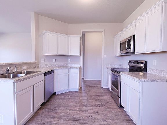 Back on the market and now has a fenced yard!! This particular home starts with a hallway entrance and 2 bedrooms off to the side with their own guest bathroom. The hallway opens up to the kitchen/living room area with a dedicated space for the kitchen table. It will have white cabinets and a light colored countertop, stainless appliances, raised ceilings in the common area and carpet in the bedrooms only. It also comes with a covered back patio.
