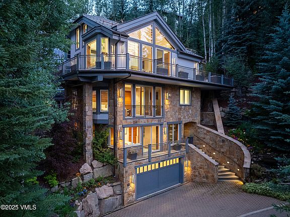 Tucked within one of Vail Village's most historic and coveted neighborhoods, this exceptional residence offers the rare opportunity to live steps away from world-class skiing, dining, and entertainment—while enjoying the privacy and serenity of a tucked-away mountain retreat. Originally designed by renowned architect Gordon Pierce and recently reimagined by one of the most respected names in contemporary alpine design, Kyle Webb, this home has undergone a complete transformation. Every detail was meticulously curated by a discerning team: the architect, the owner, and a talented interior designer who also calls this neighborhood home. The result is a masterwork—blending timeless mountain character with fresh modern luxury. From the moment you arrive, the exterior's elegant stonework and striking entrance set the tone: this is a residence of significance. Inside, large windows and open spaces invite natural light and mountain views. The interiors are warm, sophisticated, and artfully tailored—enhanced by the owner's personal collection of art that perfectly complements the home's gallery-like openness. The main living area seamlessly opens onto a thoughtfully designed wraparound patio, complete with a firepit, water feature, and vibrant garden landscaping. 5 bedrooms, including a sun-drenched primary suite with a spa-like bath and large walk-in closet, 4 guest suites with ensuite bathrooms, one currently doubling as a home gym, and a lovely top floor guest suite with private walk-out patio - ideal for peaceful morning coffee or evening stargazing. Highlights of other spaces include a chef's kitchen beautifully appointed for entertaining, mudroom and two laundry areas. Surrounded by regal pine trees, the home is a seasonal sanctuary—lush and vibrant in summer, softly insulated in winter. With deep roots in Vail's architectural history and a renewed sense of modern elegance, this home is not just a residence—it is a legacy.