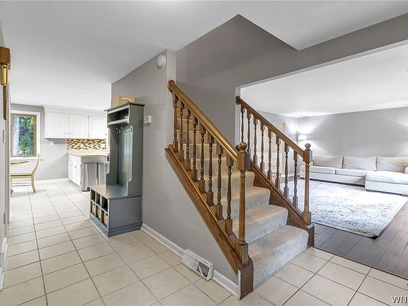 This wonderful four bedroom 2 1/2 bath tutor style home is located on a private cul-de-sac in the desirable Williamsville school district and offers a great open floor plan, updated large kitchen with solid surface counters, built-in appliances and great size eating area open to fantastic family room with cathedral ceiling, hardwood floors, newer gas fireplace insert and sliding doors leading to patio. Finishing out the first floor is a formal dining room, which is open to a large living room with lots of great natural light. The second floor offers a large master bedroom with updated bath, three additional bedrooms with lots of closet space and updated main bath. Partially finished basement. First floor laundry. Beautiful patio with scenic view. Enjoy Ransom Oaks amenities of 3 heated saltwater pools with lifeguards, tennis, basketball, pickleball & playgrounds as well as private use of clubhouse & meeting rooms by reservation for one low annual fee of $440 per year. A one year warranty is also included in the sale. Showings begin Friday May 31st at 11 AM and offers, if any, are due Tuesday, June 4 at 1 PM