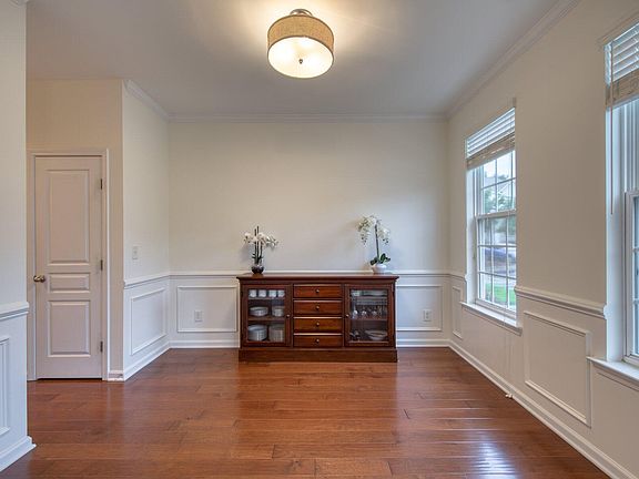 Hope Valley Farms, 3-Level Town Home! Main Level painted Dove White. Including the staircase and hallway on the second floor. Note the attention to detail with crown molding, wainscoting, chairrail, and hardwood floors throughout the main level. Fabulous Kitchen was updated with granite counter tops, tile backsplash and stainless appliances in 2017. Generous size bedroooms upstairs w/their own baths. New carpet in 2016. On the lower level you will enjoy the large Bedroom or Flex room with additional gas-log fireplace and sliding door to the patio. Plus, a full Bath and large storage room. Enjoy the walking trails and bike path. Easy access to ATT Trail!