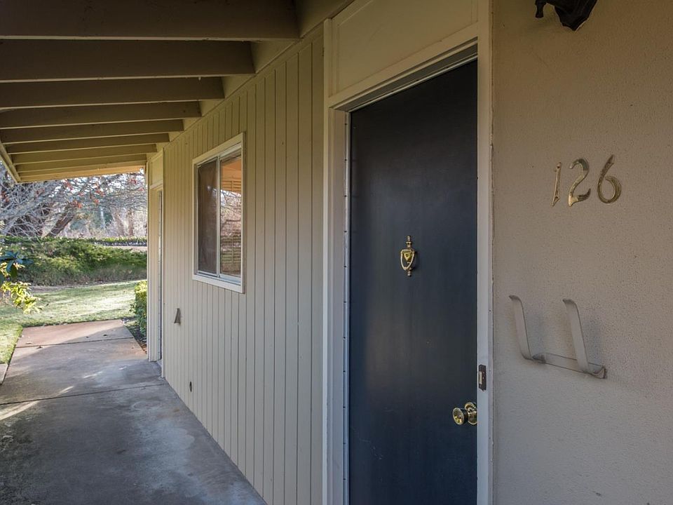 An end unit - king size with two bedrooms and two bathrooms. Large patio with gate out to large lawn area. Complete privacy and an additional laundry/storage room that could be part of living room or addition to kitchen. Away from road noise and congestion. Last remodeled in 1996 but lovingly retained for 40 years by current owner. A perfect spot to enjoy life.