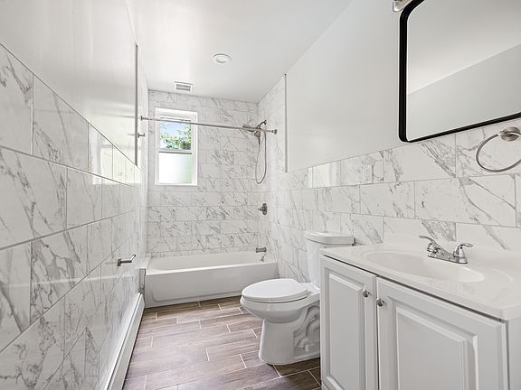 Clinton Hill newly renovated 3 bedroom, 2 full bathroom DUPLEX! This is located on the upper 2-floors of a 4-story townhouse. Upon entering the unit you'll immediately notice features such as wide-plank hardwood flooring, 3 large windows for sunlight, and a vast open space for a sprawling living room setup. The windowed open kitchen boasts a double-door stainless steel refrigerator, a dishwasher, gas stove, built in custom cabinetry, and off the side is a windowed full bathroom. The upper level features 3 bedrooms and a full bathroom. The primary bedroom in the rear can accommodate a king sized bed and has 2 closets, and the 2 bedrooms in the front can both accommodate a queen sized bed and both have a closet. Washer dryer in-unit. Pet upon approval. Pictures marked virtually staged are virtually staged.