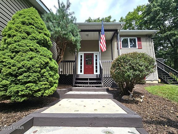 SUNRISE LAKES~ Charming 3-Bed, 3-bath Bi-Level home Nestled on 1.4 serene acres. This exquisite home offers a perfect blend of comfort and nature. Beautiful hardwood floors, large picture windows, and a spacious family room create a warm and inviting atmosphere. The primary bedroom features a luxurious bath suite with a deep garden tub. Step outside to a large deck, perfect for entertaining, and take advantage of the 2-car garage, carport and shed for all your storage needs. This home is a peaceful retreat, ready for you to enjoy.