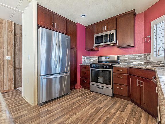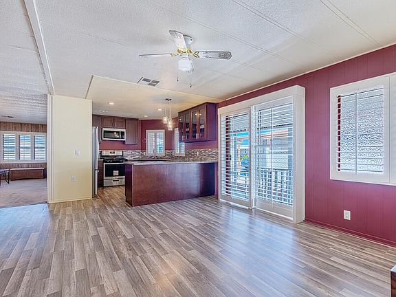 Great opportunity to own in a 55 plus park. Centrally located this gated community is very active with tons of amenities! Beautifully remodeled kitchen with stainless appliances including a gas cooktop and ample cabinet space. Large living area and dining room can accommodate all your furnishings. There is a separate den area right off the kitchen. Two bedroom, two baths and a large utility room with washer and dryer. This mobile home is being sold as-is and is part of a trust sale. Buyer's must qualify through the on-site park office.