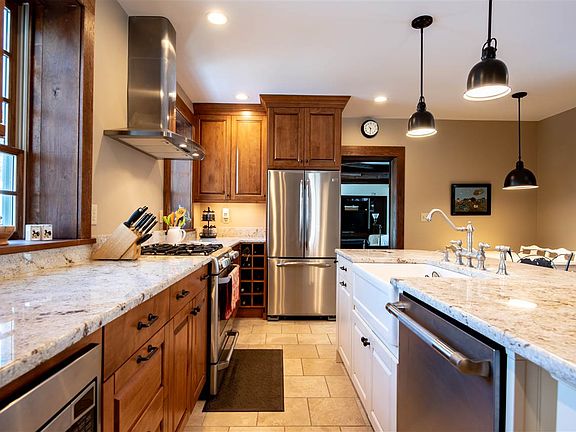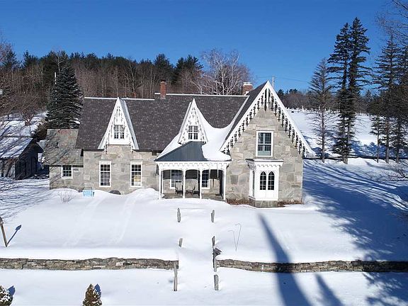 Historic architecture meets modern luxury! This outstanding Gothic Revival stone home is the perfect marriage of antique charm and craftsmanship with 21st-century conveniences and amenities. This cozy home features nicely updated kitchen and bathrooms, spacious, sun-drenched rooms, beautiful woodwork, wide plank pine flooring, and a first-floor master suite. There is an additional master suite on the second floor along with a large laundry room, guest bedroom, guest bath, and sleeping loft. After your day on the slopes, come home to relax in front of one of the two fireplaces, shoot some pool in the game room or cook a nice meal in the updated kitchen. The two-car garage will keep your cars warm and clear during the snowy months. Enjoy the spacious yard all year long. Seller recently invested in many energy efficiency improvements along with a wireless alarm system, smart thermostats and smart lock on the front door. Located only 12 minutes to Okemo, 3 minutes to Singletons General Store, and 36 minutes to Woodstock, this property offers everything Vermont has to offer and is a must see.