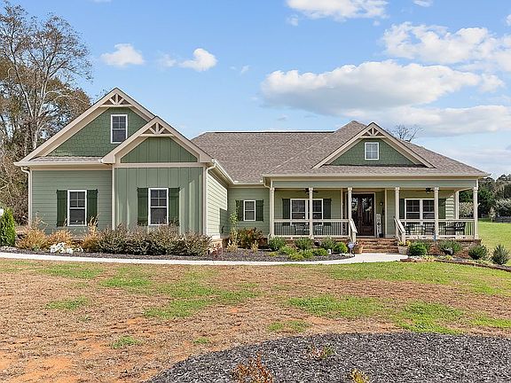 RANCH w/ oversized 3 car garage, situated on a quiet cul de sac. Front porch living at its best! Custom built nearly new home features hardwoods, neutral interiors, custom kitchen with island, coffee bar, walk in pantry with baking station. 3 oversized bedrooms on main including owners suite. master bath is ADA compliant. Bonus room over garage, bath can be added, making it a 4th bdrm. Workshop area in garage. Lovely deck overlooks pool ready backyard. Cement siding and full brick apron. Brick pavers on porch floor. Too many details to list!
