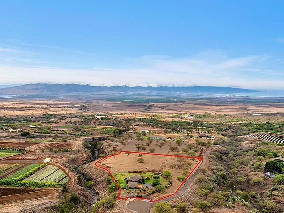 Welcome to Makani O Kula, one of Upcountry Maui’s most exclusive gated communities. Tucked away at the end of a quiet cul-de-sac, 126 Hoomaikai Place offers unmatched privacy, sweeping bi-coastal views, and 8 acres of pure tranquility. The newly built 2BR/2BA cottage sits on the front 2 acres, designed to frame ocean and mountain vistas from every room. Step onto your lanai to check north shore surf, watch the sun set over the West Maui Mountains, or simply take in the quiet beauty that surrounds you. Outside, a thriving orchard produces dragon fruit, bananas, and citrus, while raised garden beds overflow with herbs. A new rock wall and gated entry enhance the sense of seclusion. The remaining 6 acres are fully fenced, with goats grazing and a seasonal gulch along the southern border adding a touch of nature’s rhythm. At an ideal 1,400-1,500 ft elevation, the climate is perfect for year-round growing. Inside, enjoy high ceilings, a gas range, farmhouse sink, slate appliances, and covered lanais. A 5/8" water meter and ag zoning offer endless possibilities for expansion or a future main home. With only a few neighbors on the street and easy access to Kula’s farmers markets, schools, and dining, 126 Hoomaikai Pl offers a lifestyle that feels both secluded and connected. From sunrise to sunset, this is a place where the views & possibilities are endless.
