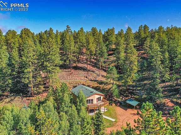Welcome to a private 40 acre horse property, only minutes from US Highway 24. Mix of Ponderosa Pines, Douglas Fir, Blue Spruce and Aspens. Remodeled home with domestic well. The home has stucco exterior, 3 decks and front patio. Home will make a great full time residence or second home. Slate entry and vaulted ceilings in the main living area. Slate floor and granite countertops in the kitchen. Large primary bedroom has its own deck. Attached bathroom has a walk in shower and walk in closet. Large living room and great room boasts a fireplace with log accents. The walk out level is unfinished, could be 2 bedrooms, bath, family room and storage room. Drywall complete but buyer will have to finish final plumbing, flooring and doors/trim. The bath has been started with many of the materials on site. A woodstove will be included to be installed at a later date. Small carport to protect a vehicle. Property is to be sold "AS IS". Land is zoned for horses but is more mountainous, treed and sloping. Located only 30 minutes from Woodland Park and 1.5 hours to skiing in Breckenridge. Also only 30 minutes from the Dream Stream and gold medal fisheries. This home could be your perfect mountain retreat. There is a barn/shed near the entrance to the property. At one time, there was a singlewide also here with 2nd electric meter. Existence or adequacy of this septic is unknown. Come see this great property.