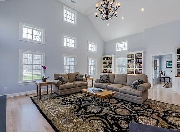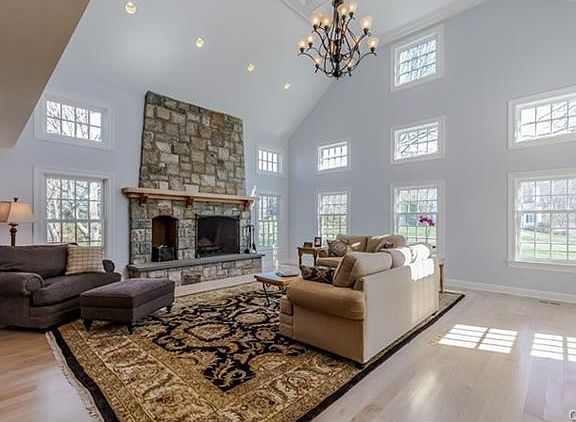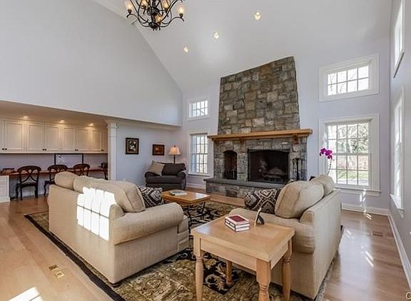 Originally built in 1983, this classic Colonial was impeccably renovated and seamlessly expanded in 2013 into a stunning 5-bedroom, 4 and 2-half bathroom family oasis, including over 4500 square feet of brand new construction. Situated on two rolling acres in the highly sought after Hoyt Farm neighborhood, this home showcases all of the modern amenities of today’s high-end residential builds. The centerpieces of the main level open floor plan include the gourmet kitchen with custom cabinetry, high-end appliances, granite center island and countertops, walk-in pantry, and the adjoining two-story family room, which features a huge stone fireplace, coffer ceiling, custom built-ins, a cherry topped study nook, and floor-to-ceiling windows. Wide-planked maple flooring and uniform custom cabinetry throughout the main level flow beautifully. The main level layout offers seamless transition from space to space including a large custom mudroom with lockers that provide plenty of accessible storage to keep your busy family organized. Easy access to the rear deck or upper level 27’x27’ rec room which boasts 15’ ceilings, a stone fireplace and built in book cases offer great functionality perfect for today’s lifestyle. The second level master suite features an expansive walk-in closet adjoined to the master bath with custom vanities and built-ins throughout. A full finished basement offers plenty of room for exercise equipment, a craft room and toys along with walk-up access to the oversize 3 car garage. Top of the line mechanicals selected with cellulose insulation provides superior efficiency and comfort year round.
