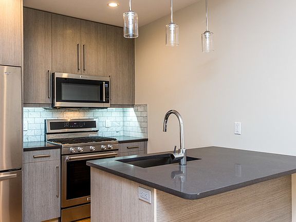 1-bedroom apartment in a brand new boutique building is available for rent as of April 1. All eight apartments were finished with the finest materials and attention to details to create beautiful, cozy and practical homes. Kitchen features custom-made cabinetry with quartz countertop, undercabinet light and carrara marble backsplash, stainless steel appliances, and an enlarged kitchen island which creates a comfortable dining area or workplace. Residents will enjoy deep soaking tub with a rainhead and handheld shower system, heated floor, and a washer and a vented dryer in the bathroom finished with white oak marble, Toto and Duravit fixtures. Separately zoned, efficient HVAC system allows to control temperature in the living room independently from the bedroom. Hardwood floors, large windows, high ceilings, audio-video intercom and an entryway vestibule serving as a storage add to the residents' comfort. The building is located on a beautiful block, steps from the G train station, Citi bikes, a bus stop and a short walk from the ferry. Parks, restaurants and supermarkets are all within a close proximity to the building. Pets allowed on a case-by-case basis. No fees posted by the owner of the building.