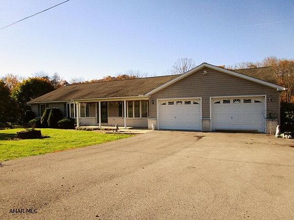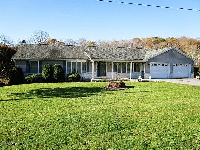 Very well maintained rancher with river frontage! Main level offers a living room, kitchen w/cherry cabinets and breakfast area, formal dining room, master suite w/m. bath & jet tub, additional full bath and half bath, two additional bedrooms, and a den w/built-in desk and cabinets. Full walk-out basement with a large family room, kitchen, full bath and storage room with overhead garage doors. Gas FA heat and central air-conditioning, two-car attached garage w/macadam driveway. Front porch, huge rear porch and deck overlooking the Juniata River, and partially wooded lot. If you like scenic river views, canoeing, kayaking or fishing, this property is for you. Great location in Snake Spring Township.