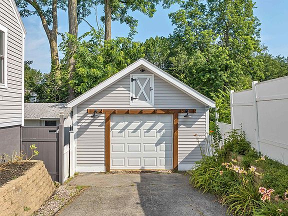 2-3 BEDROOM, stylishly remodeled 1950 Cape with detached 1-car garage. The sleek custom kitchen is the centerpiece of this home, featuring beautiful quartz countertops and kitchen island, providing ample workspace for all your culinary adventures. SS appliances, including a modern range hood and deep kitchen sink add to the impeccable style and function. Luxurious 1st floor bathroom with a standout custom shower will add an element of indulgence to your daily routine. There is option for stackable laundry unit in this space or utilize additional hookups in a dedicated room in the basement, providing flexibility and ease when it comes to handling your laundry needs. Many walls have been opened up to create a more contemporary living style. This design choice ensures a seamless flow between the living spaces, allowing for an abundance of natural light to fill the rooms. Currently there are two well-appointed bedrooms, and there is potential for a third bedroom on the second floor, providing versatility to adapt the space to your needs. The partially finished walkout basement opens up to a private fenced backyard sanctuary, where you can unwind on the ground-level wood deck with built in seating. The backyard also offers a stone faced raised garden bed and a charming garden shed adds to the appeal of the outdoor space. Don't miss the opportunity to make this beautifully remodeled Cape your new home. No delayed showings. Open House Saturday 7/29, 10-12.