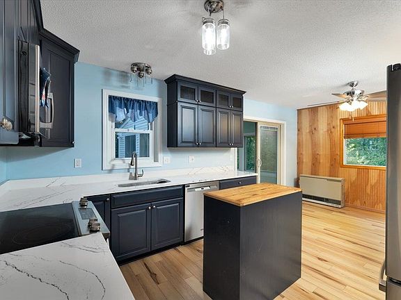 Beautifully updated Colchester home packed with features and upgrades on a spacious 1+ acre lot with direct access to the Colchester bike path and walking distance to Mallets Bay! The brand-new kitchen open to the dining room and main living areas showcases stainless steel appliances, solid-surface counters, a center island, and fresh cabinetry, while new LVP flooring extends throughout the home. A soundproofed media room with direct deck access affords flexible use as a first-floor bedroom with en suite bath access while a sunroom with walls of windows adds year-round living space surrounded by views of the shaded backyard. Upstairs, the primary suite includes a walk-in closet and shared en suite bath access, complemented by two additional bedrooms on this level. Meanwhile the finished basement provides extra living space with a cozy gas stove, perfect for the winter months, while the multi-tiered backyard decks offer plenty of outdoor living options in a private, shaded setting. Additional highlights include updated vinly windows throughout the home, efficient natural gas heat and a 2 car garage with an attached carport for additional storage needs. Modern finishes, privacy, and a convenient location close to Colchester amenities, area recreation, and commuting routes, come see today!
