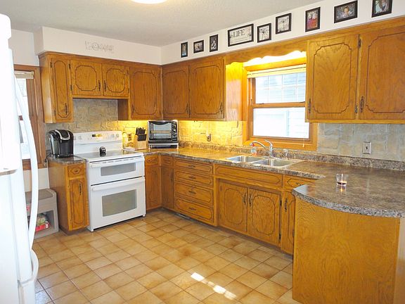 Kimberly four bedroom, two bathroom home has been updated and well cared for and features Tile floors and stone accents in the spacious kitchen , jetted soaking tub , main level master suite with full bath , nicely finished lower level family room with fireplace and built in book shelves plus adjoining den/office. The two car garage has a walk up attic with head room.
