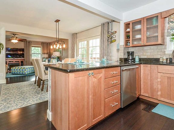 Fully-renovated ranch-style home on almost 1/2 acre in Colmar! Situated at the end of a quiet street, this immaculate home is surrounded by an open space lawn and mature trees. The cheery front entrance sets the stage for the inside of the home, where you'll discover dark hardwood flooring, neutral color walls and new LED light fixtures that brighten every room. The foyer leads to the kitchen boasting shaker-style Kraftmaid brand cabinetry, granite countertops, a tile backsplash and stainless appliances. The large peninsula with barstools provides a great place for an informal meal. The kitchen opens to the dining area where a French door leads to the home's exterior deck. The dining room flows into the living room, where you'll find a window, ceiling fan and full view door leading to the large wrap-around deck that's perfect for entertaining and summertime barbeques. There is an oversized 2-car garage adding plenty of storage space and a wide, recently paved driveway that provides ample parking for multiple cars. Moving back inside, you'll discover a master bedroom suite with full bath, as well as 2 additional bedrooms, each with a ceiling fan, new plush carpeting and a spacious closet. The home is topped off with a full hallway bath, two double closets and a laundry area. Both bathrooms are highlighted by custom tile, attractive vanities and mirrors. New windows and doors throughout the home complete the renovations. All of this and close to shopping, restaurants and the Colmar train station!