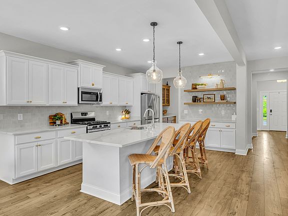 Up to 1% Lender Credit (max $5k) with use of premier lender, OriginPoint Mortgage. Pre-Approval required and offer valid through 8/31/24. Experience the luxury of new construction without the wait! This like-new home is less than a year old and is situated on one of the most desirable lots in the community backing up to beautiful lush landscaping and the community lake. Filled with natural light and countless upgrades this home features 4 bedrooms, formal dining/office, bonus room, and hobby room. The kitchen is show-ready with quartz countertops, custom backsplash tile, a coffee bar, a butler's pantry, a walk-in pantry, and a gas stove to top it off. Unwind in your stunning primary suite that features an oversized tub, glass-enclosed shower, and walk-in closet. All rooms upstairs enjoy lake and sunset views. Invite friends and family over to play in the large backyard perfect for entertaining. The community playground, pond, & barn are just a short walk away.