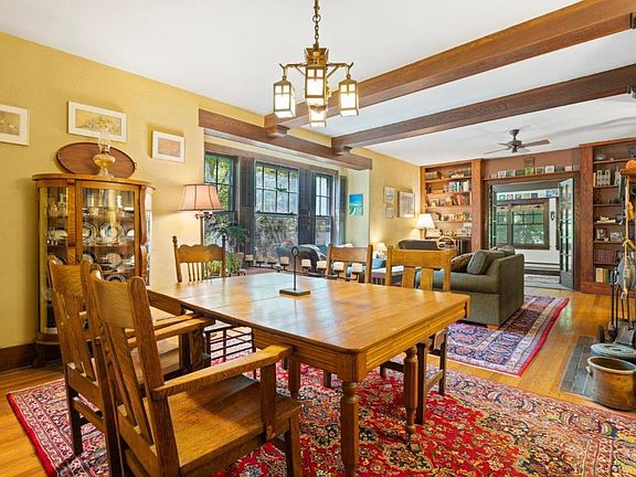 This historic property was designed by architect and Cornell alumni Helen Binkerd Young for her residence in the early twentieth century. This picturesque home was modeled after an English country cottage, designed with a broad gable slate roof, flared eves, exposed rafter ends, and stucco exterior. The home is set back off Judd Falls, facing the magnificent sounds and views of Beebe Lake. The sq/ft and assessment do not include the 2015 accessory building designed to match the main house, with a 1-br apartment, garage, and additional off-street parking. Lovingly cared for and maintained, this home has stood the tests of time and provides a quiet, comfortable oasis within walking distance of Cornell. Sit on the back patio and enjoy the sounds of the lake and nature or cozy up in the 4-seasons room in winter. The walk-up attic provides the opportunity for expansion, the gardens deliver tranquility and privacy, and the apartment can serve as additional income or as an ideal guest house.