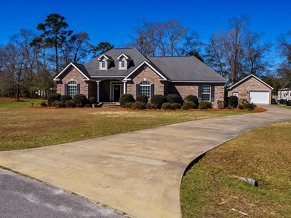 Brick home in coveted Odum School District with beautifully landscaped yard. Columns create an opening statement in the foyer as it opens up into the living room. The living room feels expansive with tray ceilings and built-in cabinetry. The fireplace offers warms and gathering. The laundry, kitchen, and bathrooms all have tile flooring while living and dining rooms have wood floors and bedrooms have carpet. The kitchen has custom cabinetry and granite countertops. This room is open to the living area which creates a larger feel to the room. The Master bedroom also has tray ceilings. The Master bath has double sinks, a jacuzzi tub, and a separate shower. Outside there is a large shop with a garage door, built-in shelving, and work area.