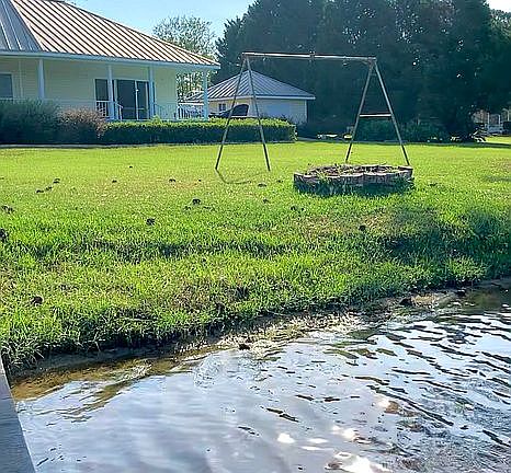 Has eco-friendly options like a metal roof, smaller windows to keep heat down on road-facing side, attic fan, instant heat water heaters (on demand), sprinkle system that uses lake water & not city water, etc.. Custom furniture, custom solid wood cabinets. Laminate flooring tiled flooring pull up carport, water fountain,